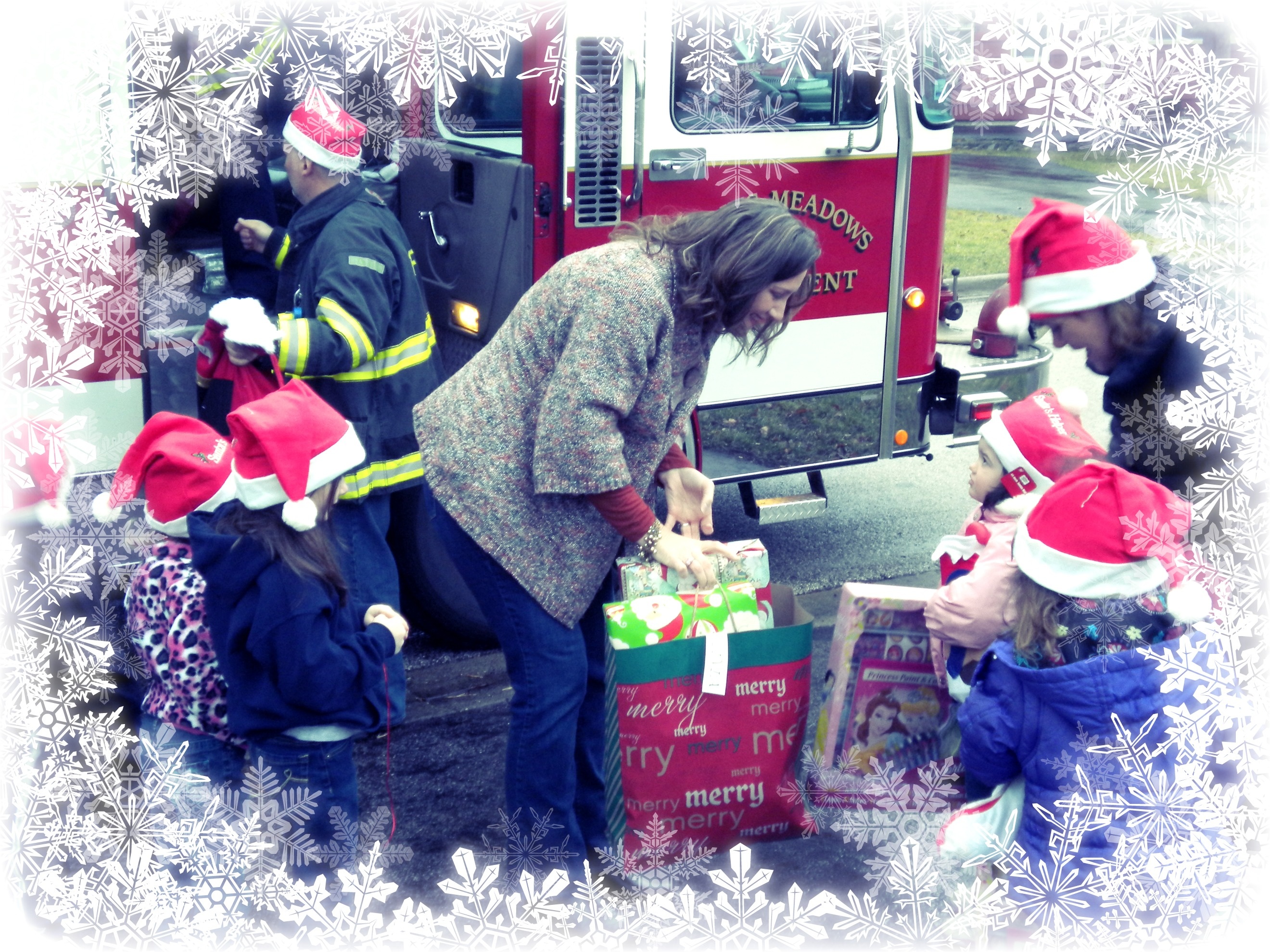 The presents consisted of clothes and toys for the kids, as well as gift cards for food and gasoline. This was all put together by the wife of Rolling Meadows Firefigher Lance Neuses. His wife Jeniffer had previously met the mother and discovered the family’s need. Jeniffer mobilized her friends and coworkers – and they put together an assortment of gifts to help the family through the holiday season.